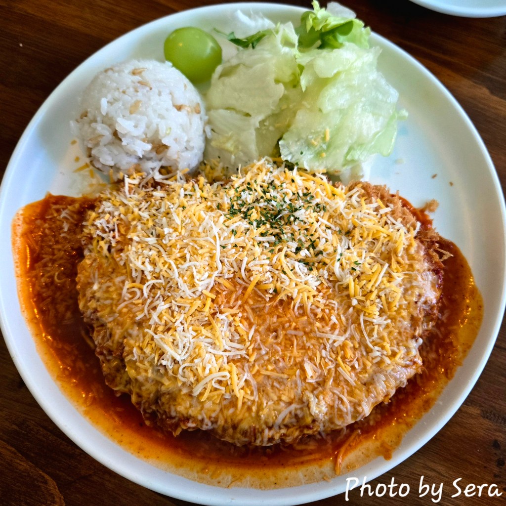 The tender Hamburg steak, drenched in savory sauce, perfectly complements the crispy outer crust and cheesy filling of the cutlet. The best part? Unlimited fresh salad and side dish refills!
