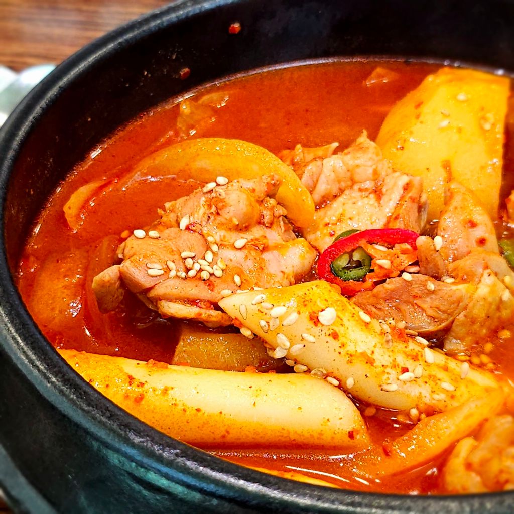 오늘 점심메뉴는 뚝배기닭볶음탕(뚝닭)와 눈꽃치즈감자전
